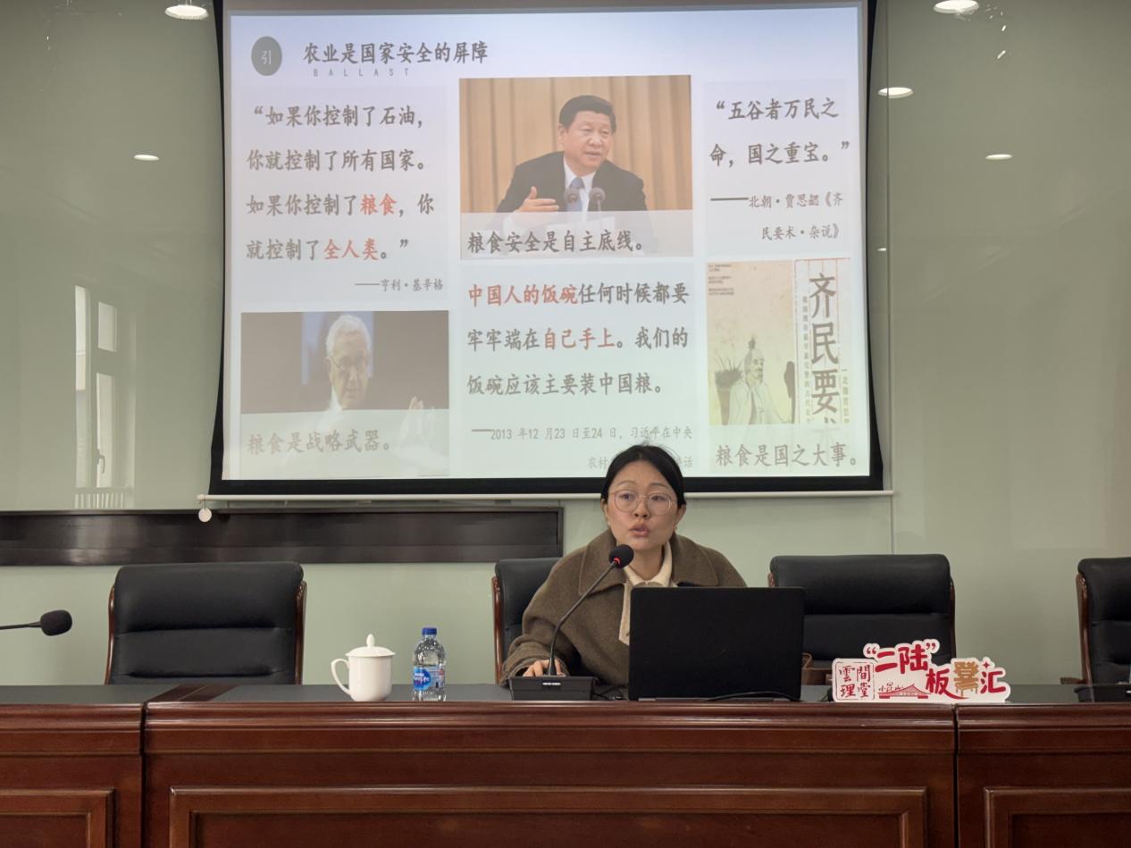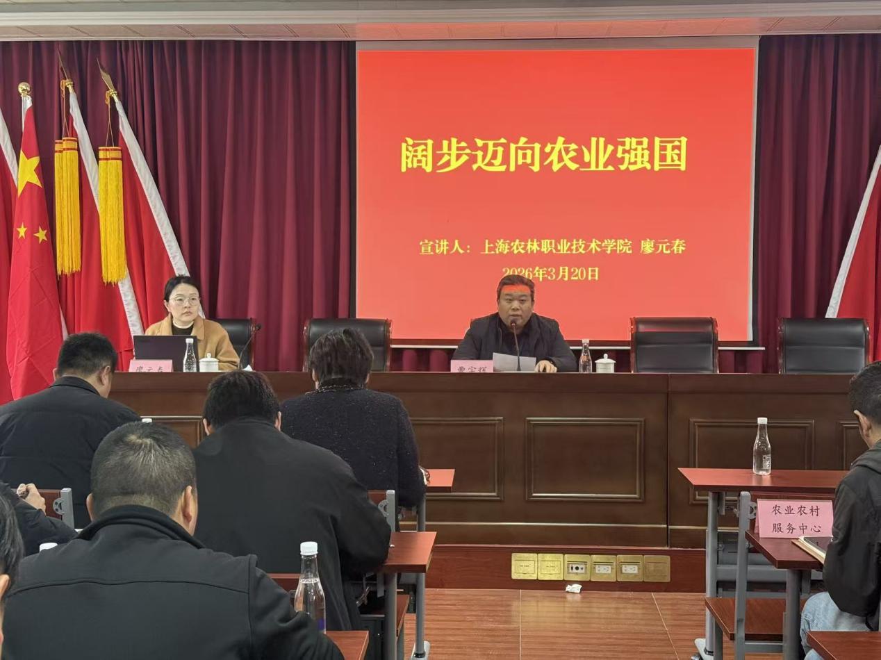 为深入学习贯彻党的二十届四中全会精神,2026年3月20日和27日,马院教师廖元春作为松江区“思政讲习团”讲师团成员,应邀分赴石湖荡镇和小昆山镇,为基层党员干部作了题为《阔步迈向农业强国》的专题宣讲。